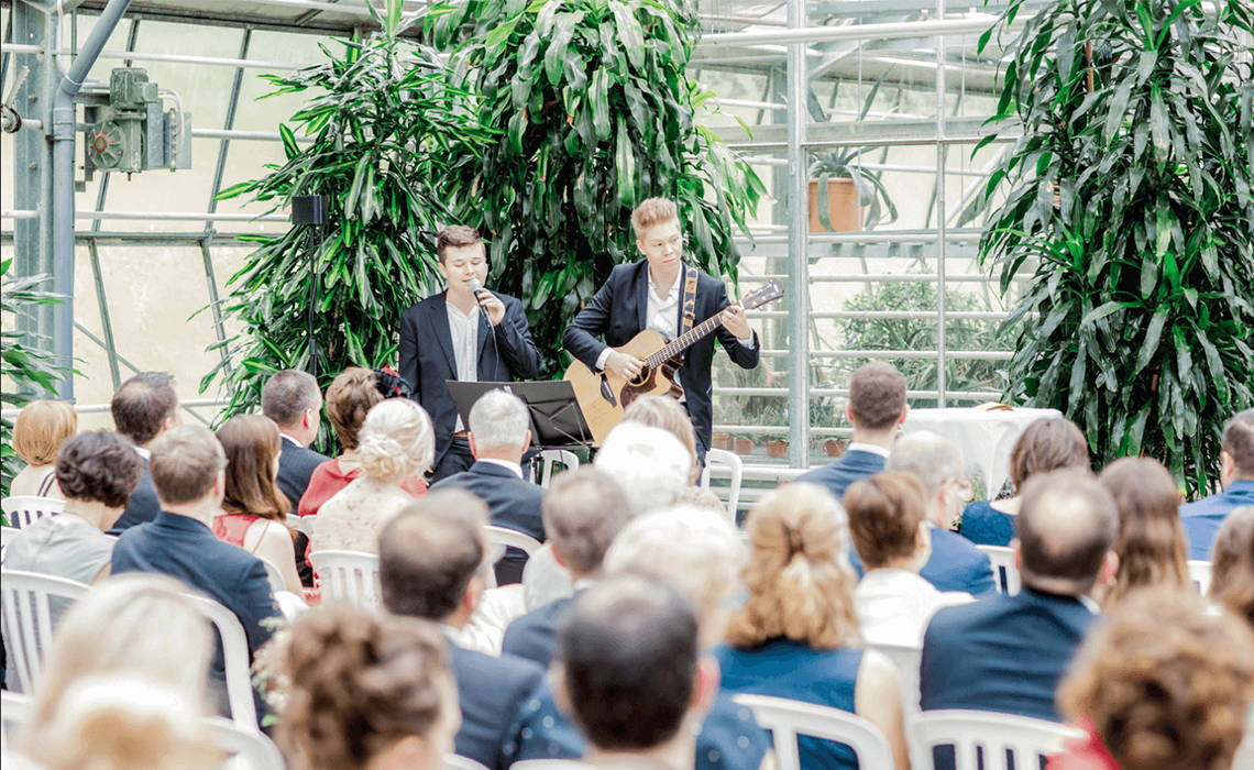 Wir haben Lucca und Timothy in Basel bei einem Strassenkonzert zum ersten Mal gesehen und waren sofort von ihrer Ausstrahlung und ihrem musikalischen Talent begeistert. Die Vorbereitung mit ihnen für unsere Hochzeit war professionell und unkompliziert. Wir durften sogar Liederwünsche anbringen, die sie extra für uns einstudiert haben. Am Hochzeitsfest haben sie durch ihre sympathische und authentische Art zur perfekten Hochzeitstimmung beigetragen. Vielen herzlichen Dank, wir würden euch jederzeit wieder engagieren!